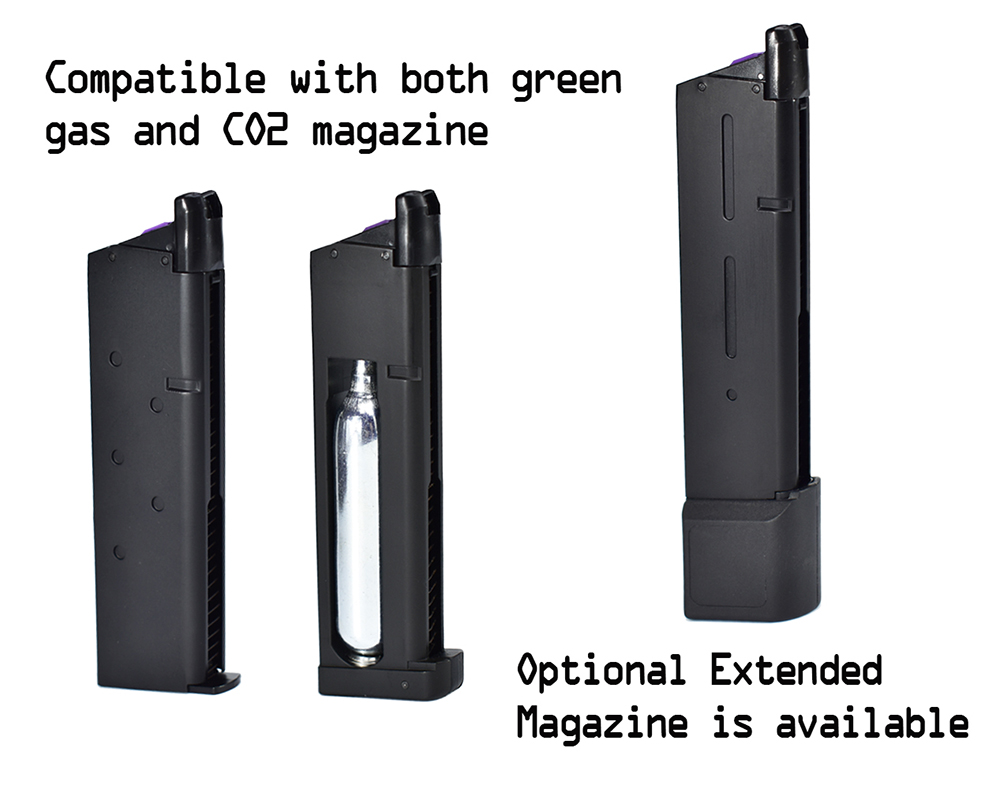 • Compatible with both green gas and CO2 magazine. Optional Extended Magazine is available